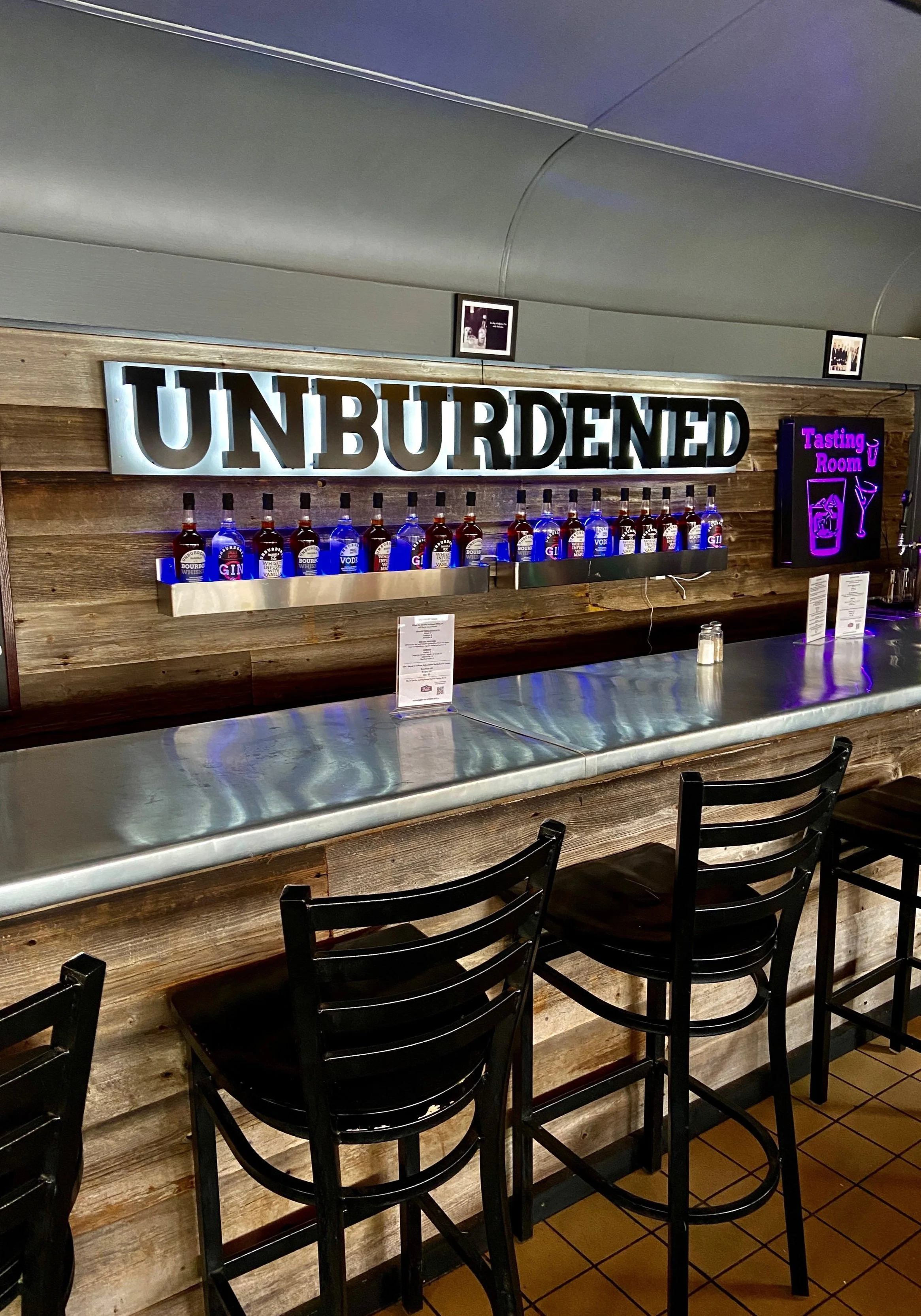 We also offer take home bottles of Unburdened Spirits, our current bottles available are: